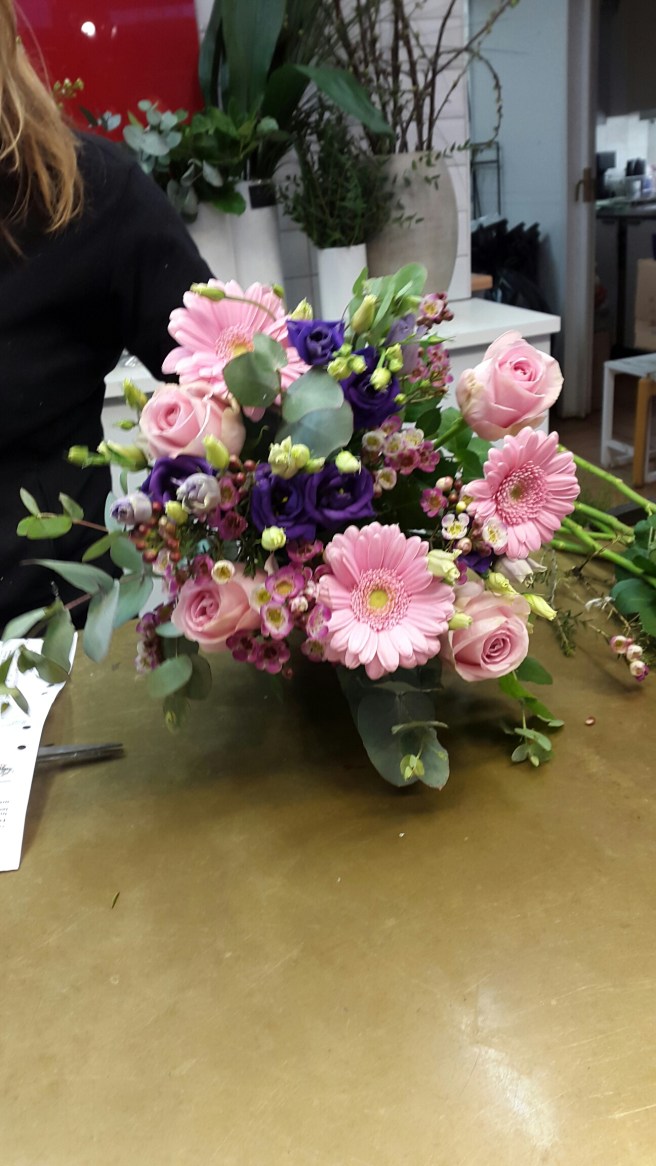 När jag kom hem efteråt så hade jag 2 missade samtal från ett nummer jag inte kände igen. Ringde upp och det visade sig vara blombutiken i centrum. De hade blommor till mig!! Eftersom jag ändå skulle upp för att åka till jobbet så sa jag att jag hämtar dem på vägen. Och då fick jag med en ask choklad oxå, för att de inte behövde leverera dem!