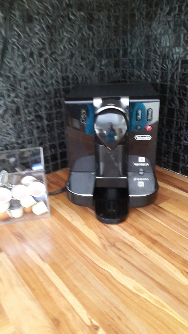 Jag kan sätta i mjölkbehållaren och göra en latte. Men sen ska man göra nåt för att rengöra mjölkröret. Och det vete 17 hur man gör. Men när jag rotat runt i alla urton skåp så hittade jag neskaffe. Yeeeiii!