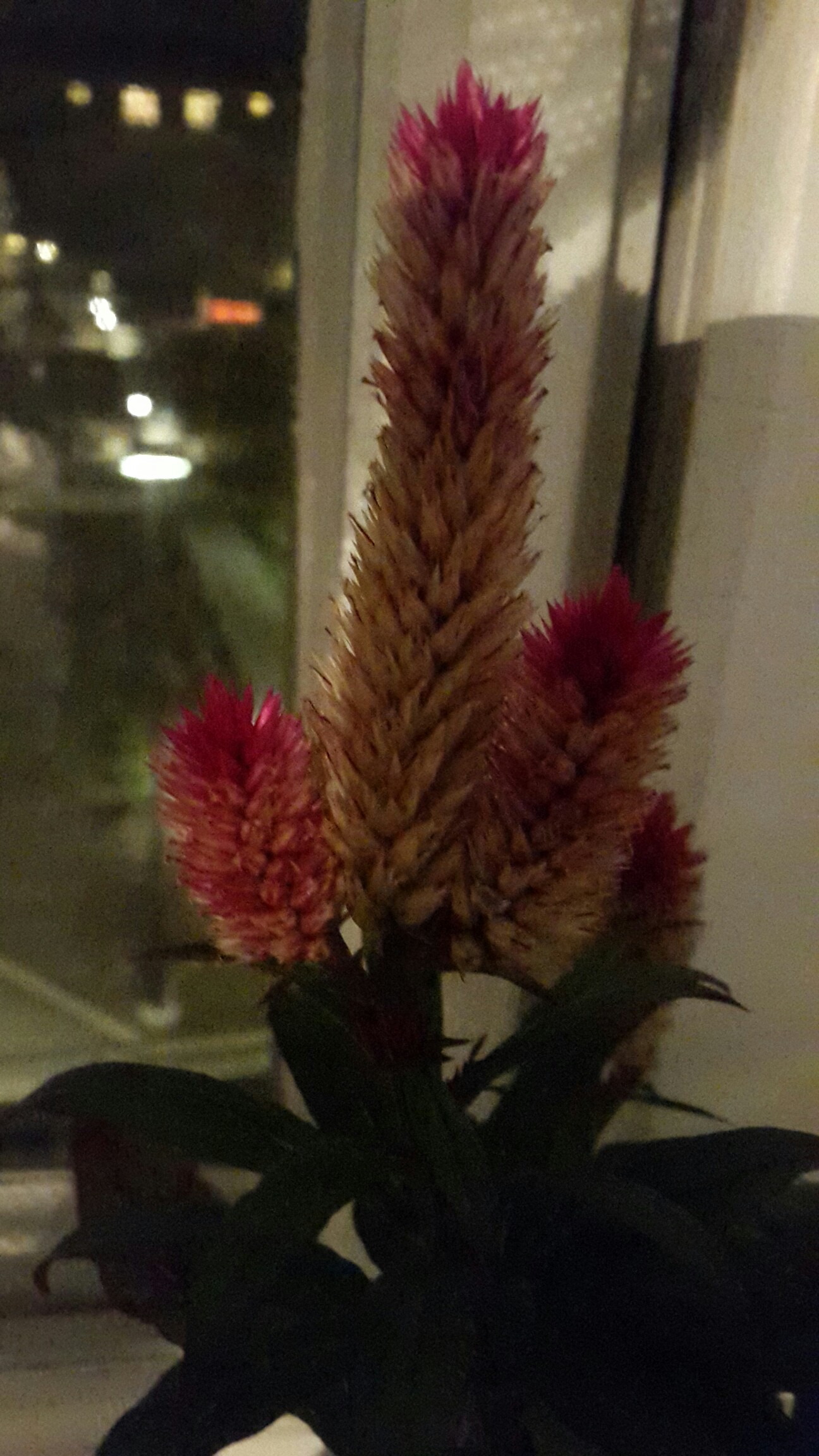 Igår när jag skulle dra ned rullgardinen i sovrummet fick jag syn på att den ena blomman, som jag trott var på väg att dö, fått nya blommor. Eller vad det är…