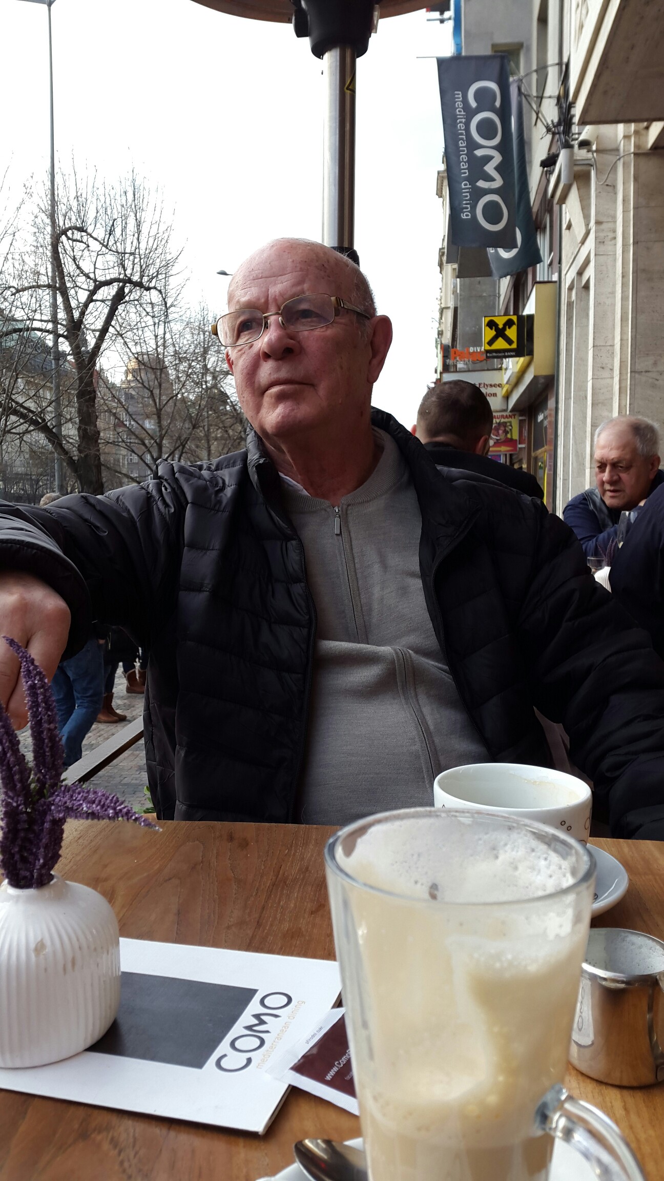 Vi satt på ett fik under värmare och tog en fika när vi var trötta i benen.