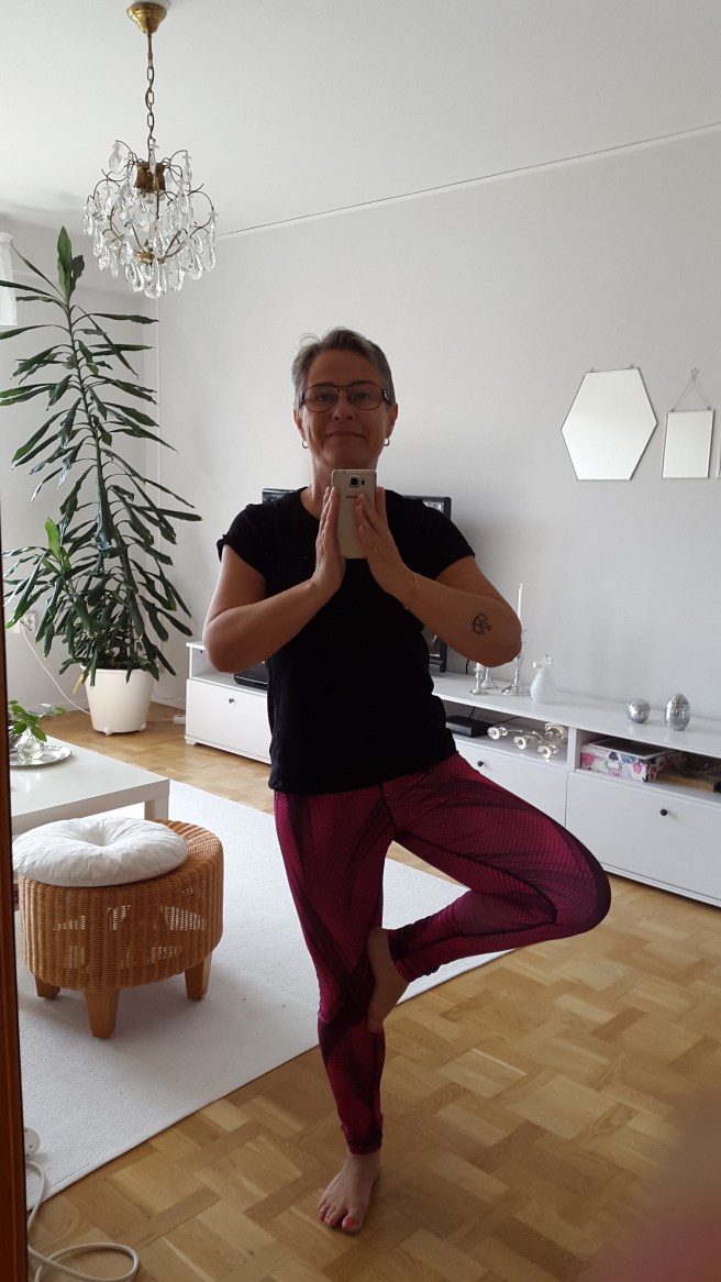 Eller yoga tant, snarare… Stel som en pinne är jag, fast det var jag i och för sig även som ung. Men jag gillar yogan, och det är ju antagligen väldigt bra att stretcha och tänja på en stel kropp!