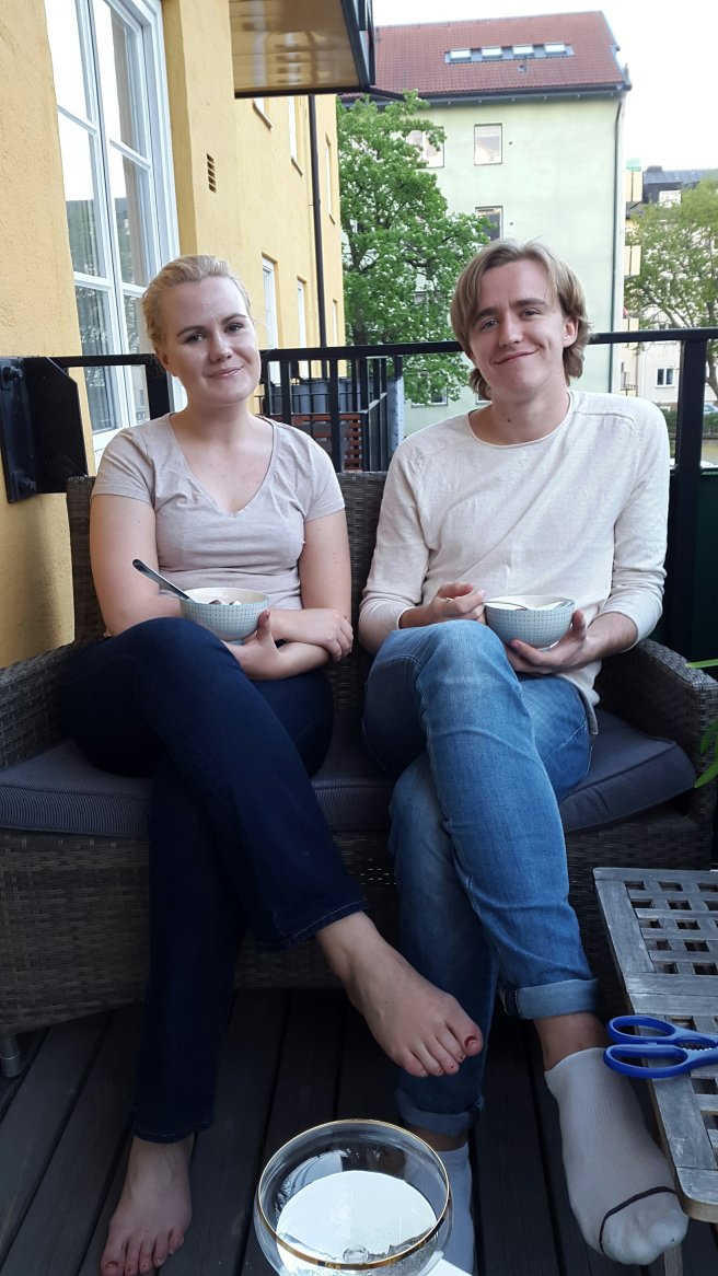 Igår var jag hemma hos Nästanguddottern tillsammans med Gudsonen på middag. Hon har en så jättefin lägenhet! Hon hade gjort en supergod sallad med bladspenat, pinjenötter, kyckling, fetaost och jordgubbar i. Passade perfekt på sommarens första dag! Och vi kunde sitta på balkongen och äta!