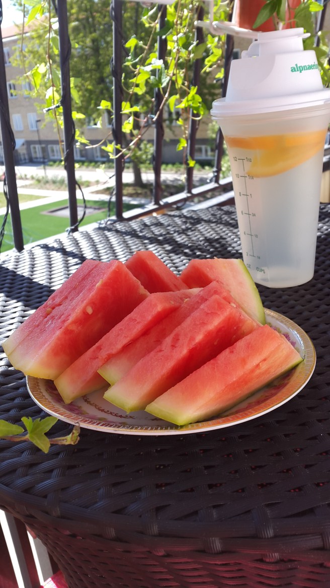 Ätit vattenmelon och druckit en massa vatten med apelsin i. Gott!