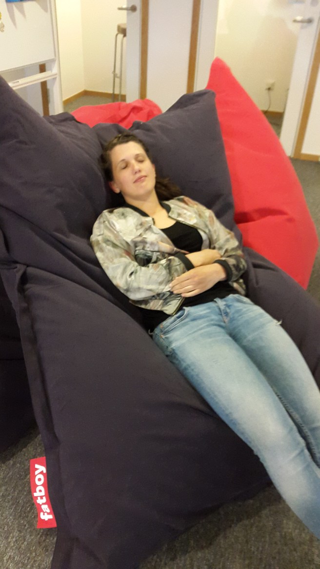 I nya lokalerna har vi nu en kuďdhörna på vår avdelning. Me like!! Känns helt okej! Satt och läste i kuddhögen på lunchen. Mys!