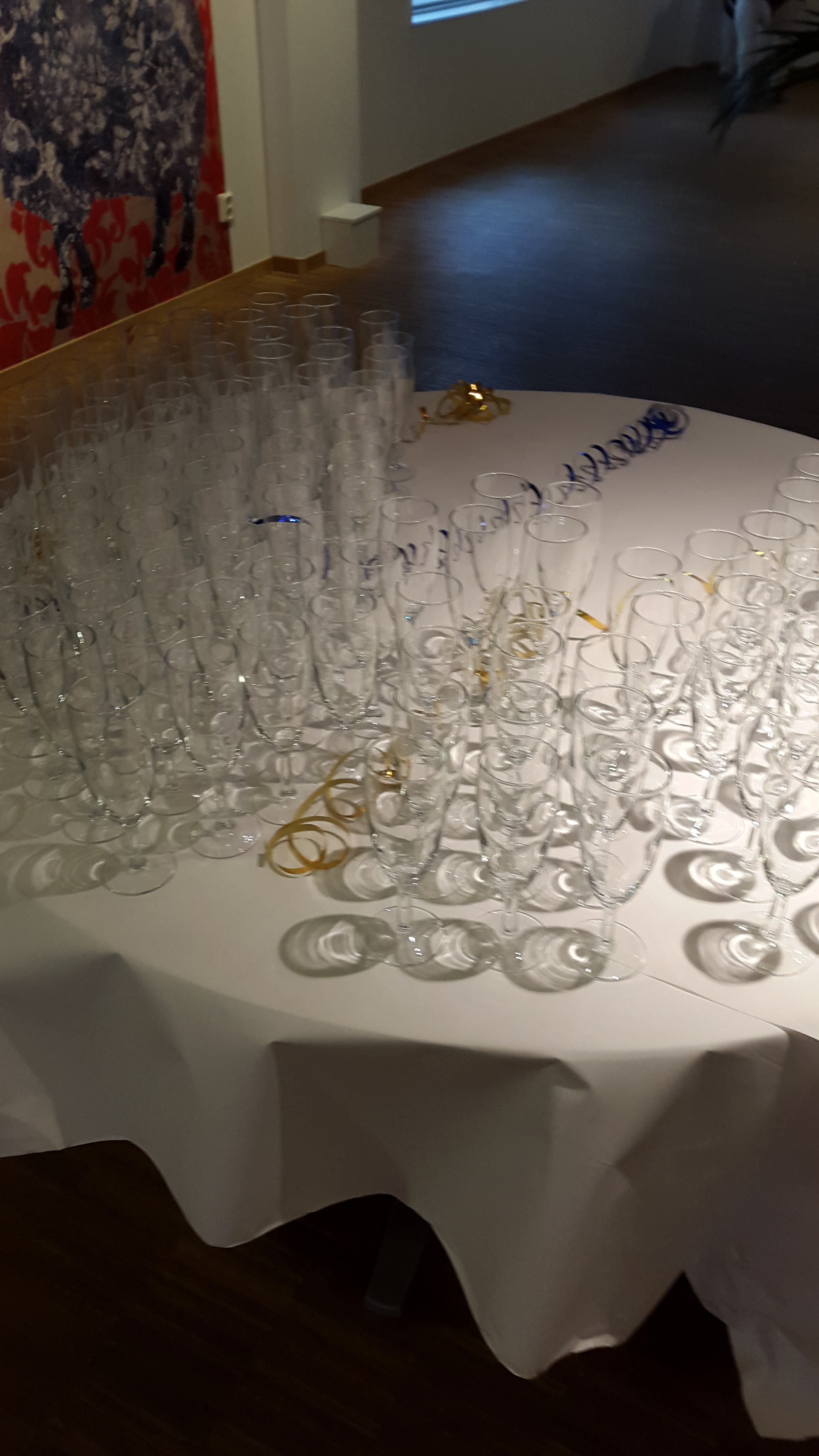 Först fick vi varsitt glas bubbel och så häll VD tal och klippte band. Och sen fick vi god mat!