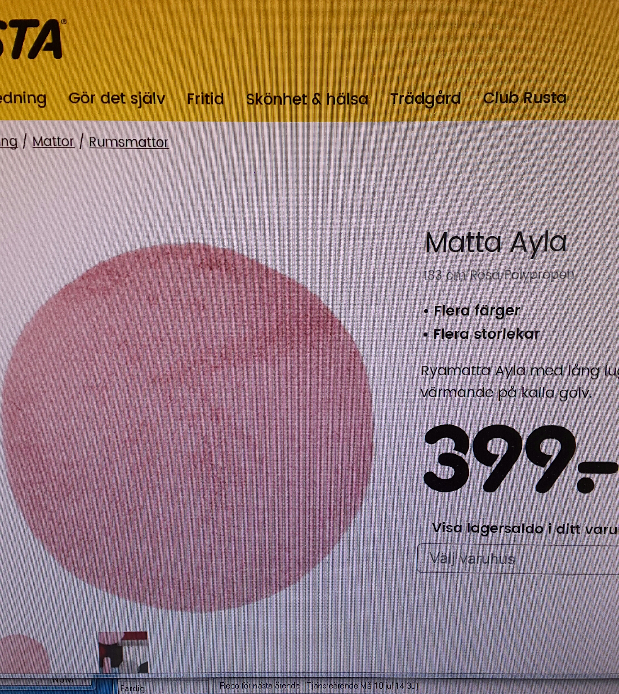 Jag har ju en stor, vit, fyrkantig matta i vardagsrummet, och den blir ju snabbt skitig. Högst opraktiskt! Så nu har jag funderat och dels vill jag ha en rund matta och så vill jag ha en rosa. Det bryter av fint!