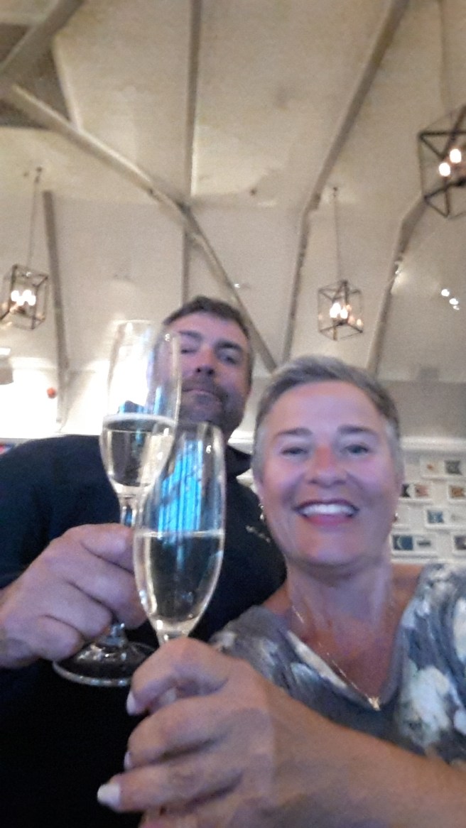 Efter middagen satt vi i baren med varsitt glas prosecco och pratade med den jättetrevliga bartendern.