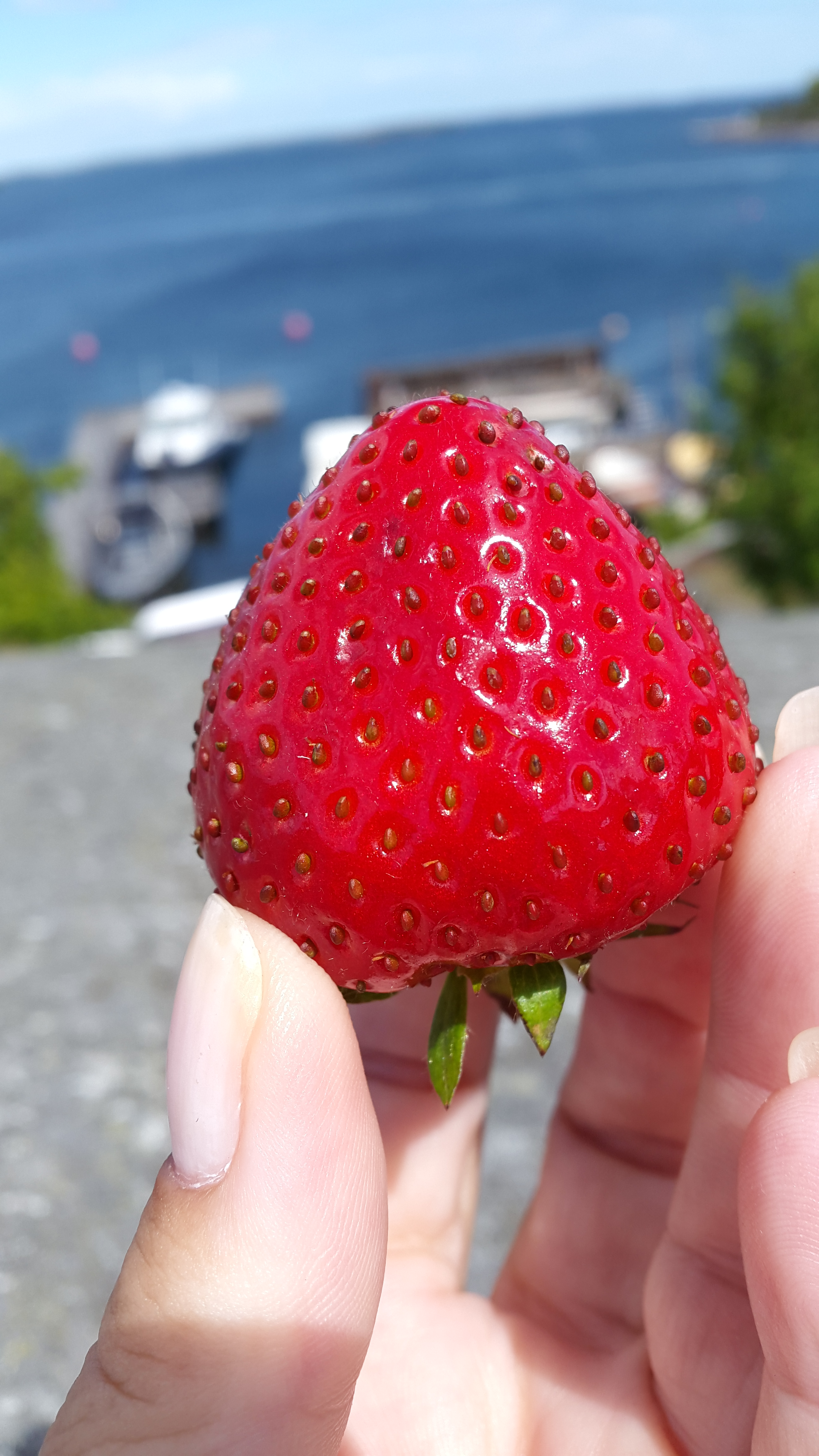 Vi satt en stund på en klippa och njöt av utsikten och av svenska jordgubbar.