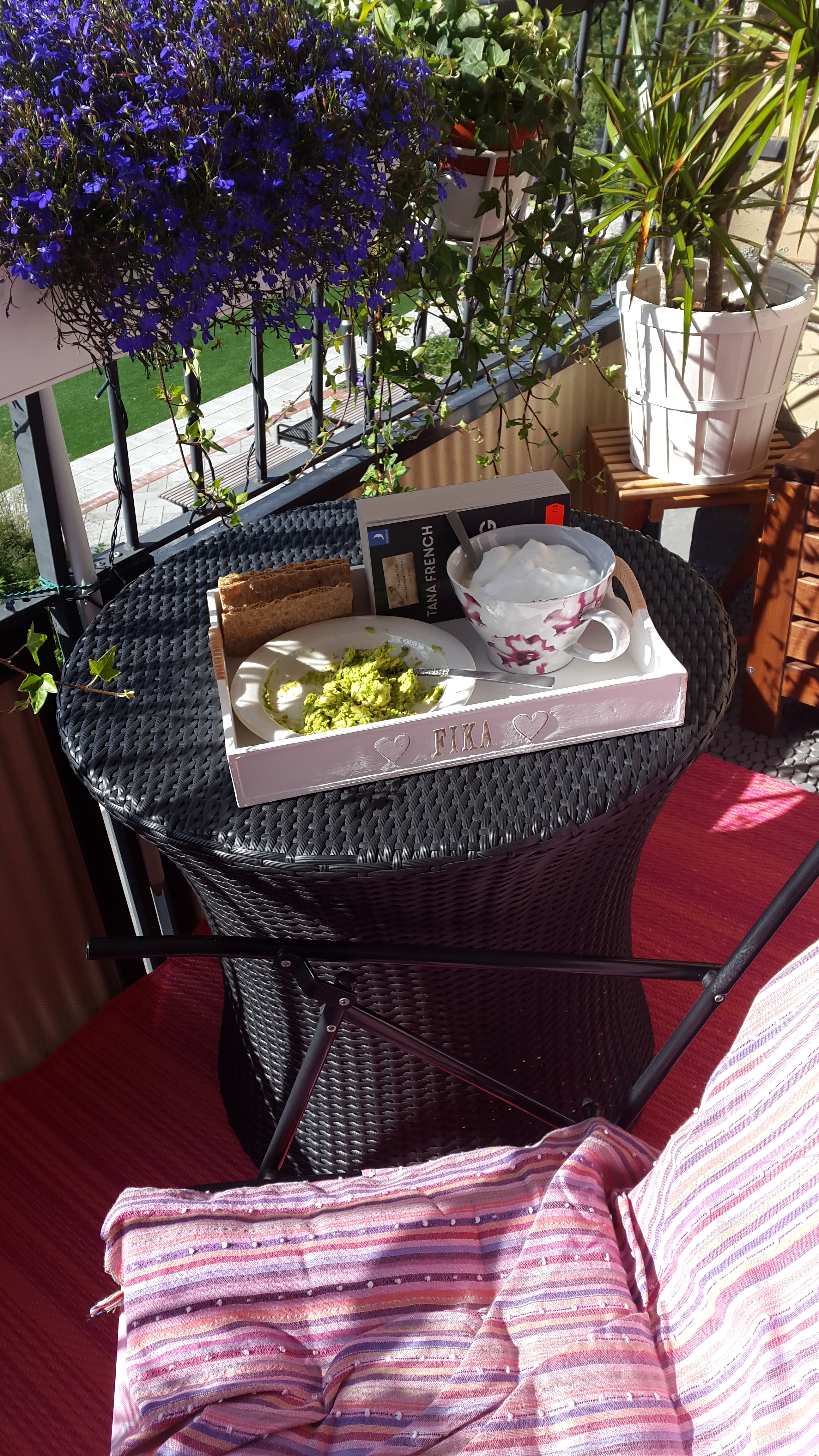 De sa på väderleksrapporten igår att det ska dra in regn framåt lunch idag. Får väl se om det stämmer. Hur som helst orkar jag inte packa och åka till klipporna eller stranden. Jag stannar på min balkong!