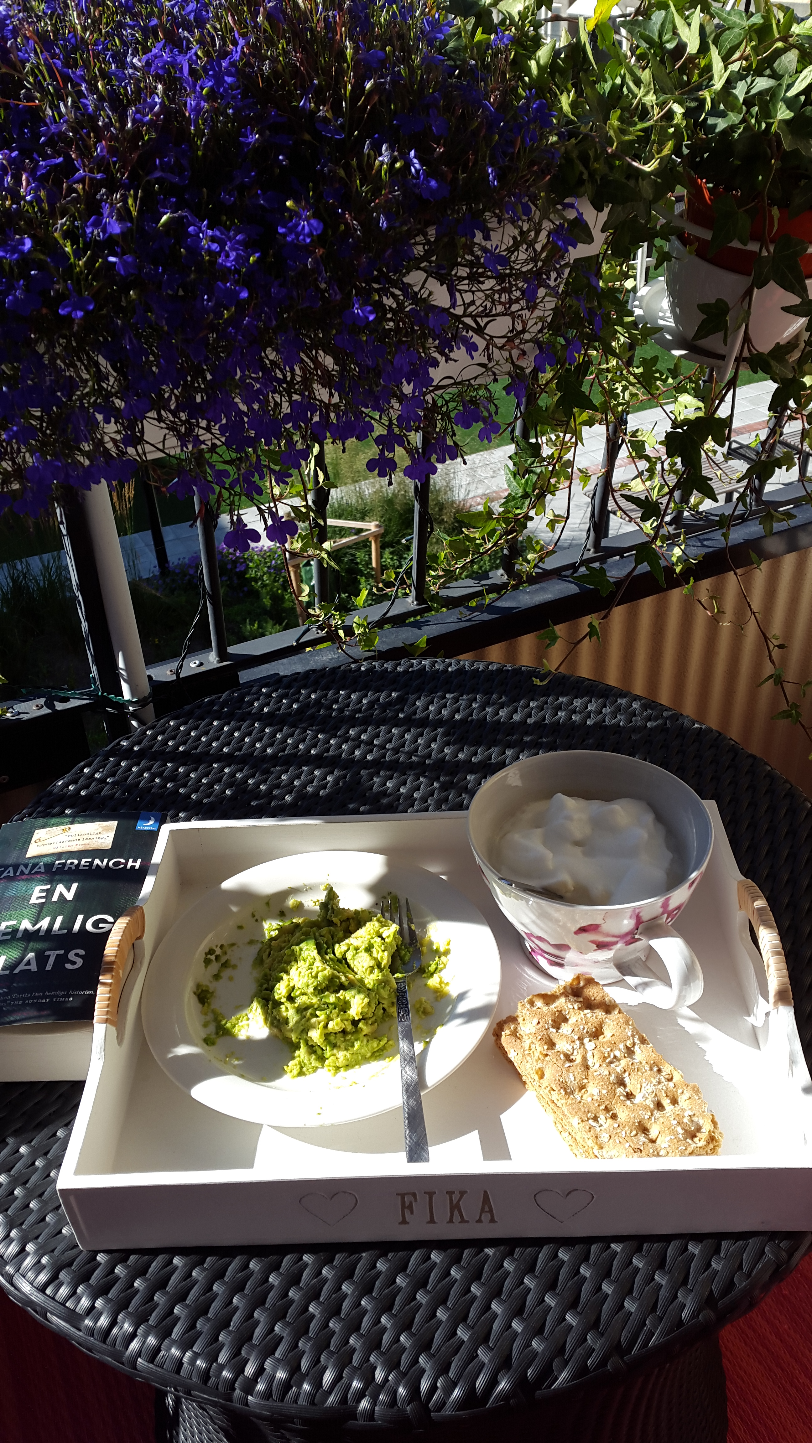 Innan jag låste in alla mina tillhörigheter, typ, i bilen idag så hade jag sköna timmar på balkongen.