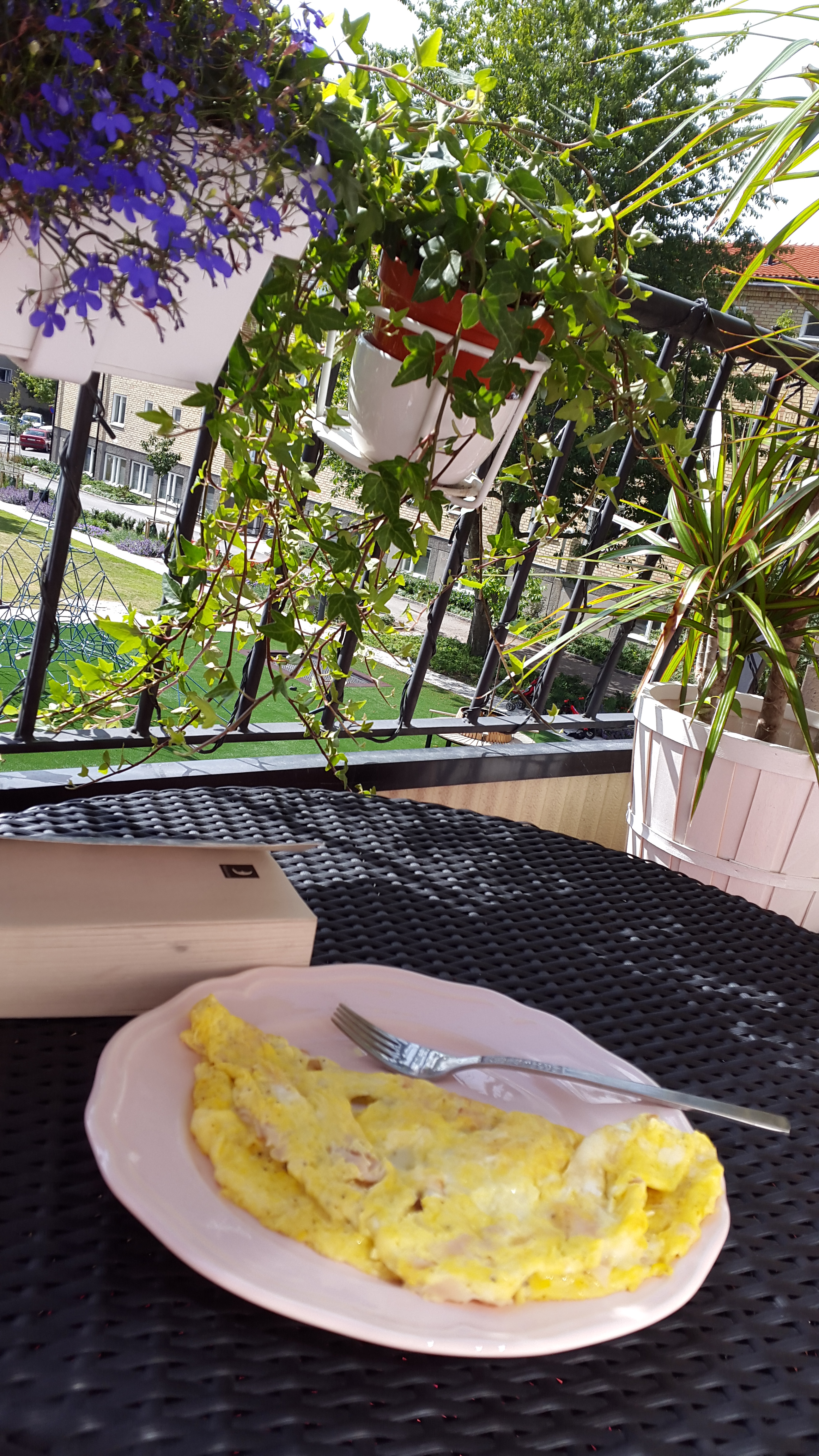 Och så slängde jag ihop en omelett med rökt kalkon, lök och ost i till lunch.