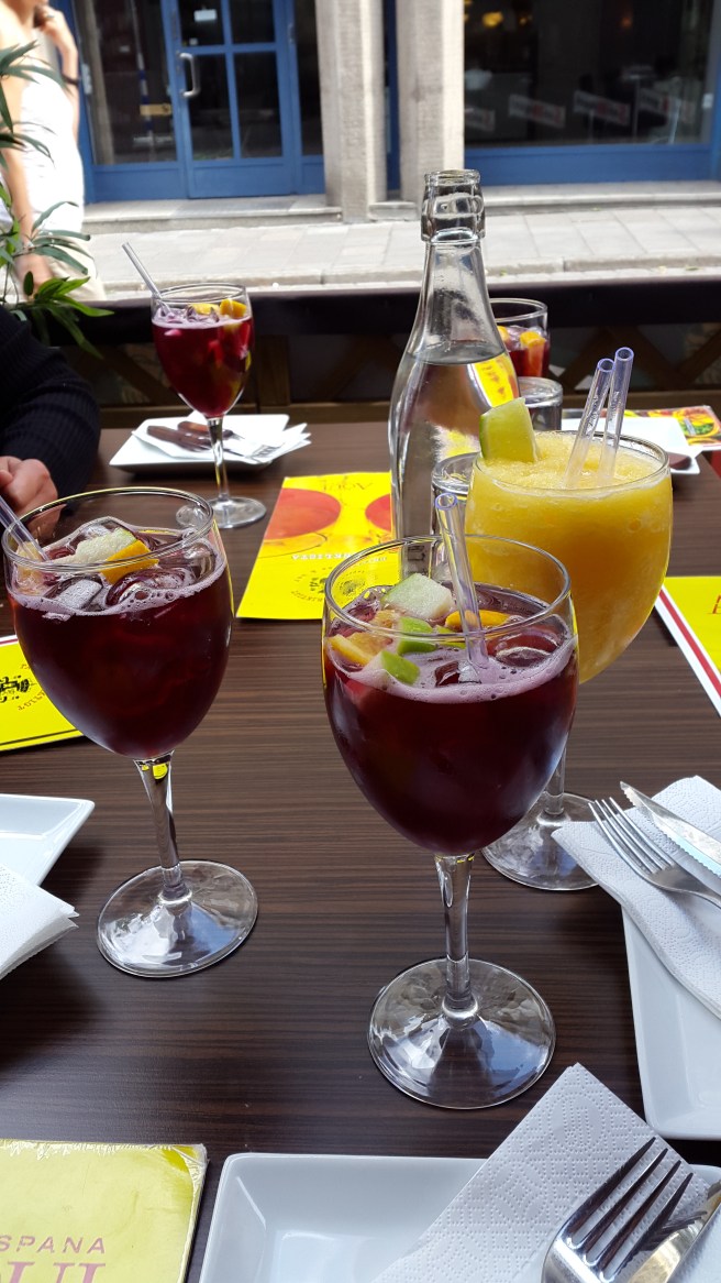 Sangria till oss som inte är gravida och Nettis drack en alkoholfri mango daiquiri. Supergod, den med!