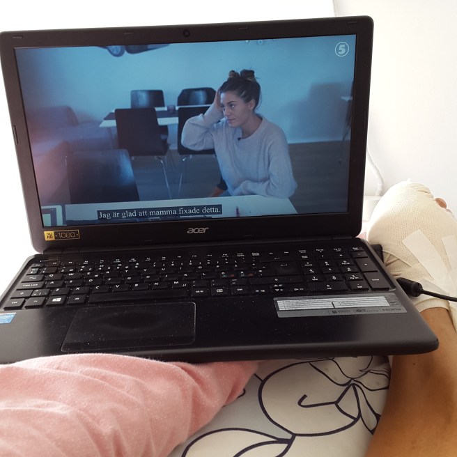 Foten uppallad på kuddar och så har jag kollat på TV, eller Dplay och Wahlgrens värld och så sovit en stund så och då.