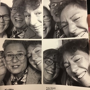-Nej, men det är ingen fara, svarar servitrisen.  Vi har märkt att ni haft en skrattfest här, det är ju kul! Vem av er var det förresten som blev mobbad för sina glasögon?