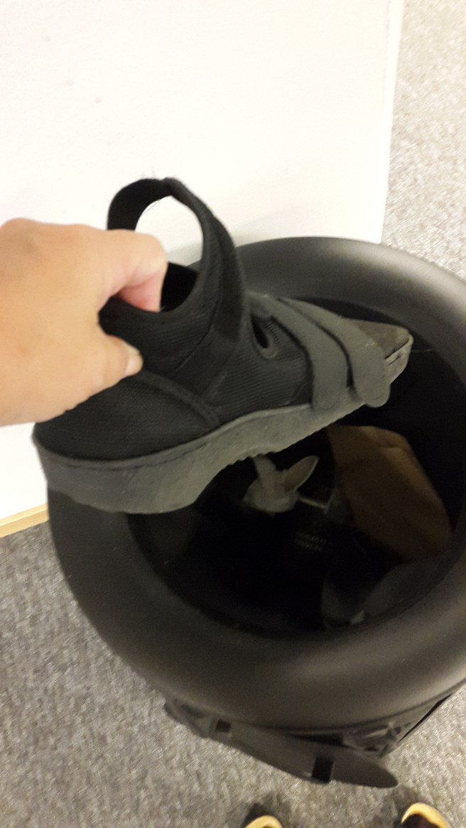 Först försökte jag klämma på mig mina låga promenadskor imorse, men den högra var för trång. Då tog jag fram de här: