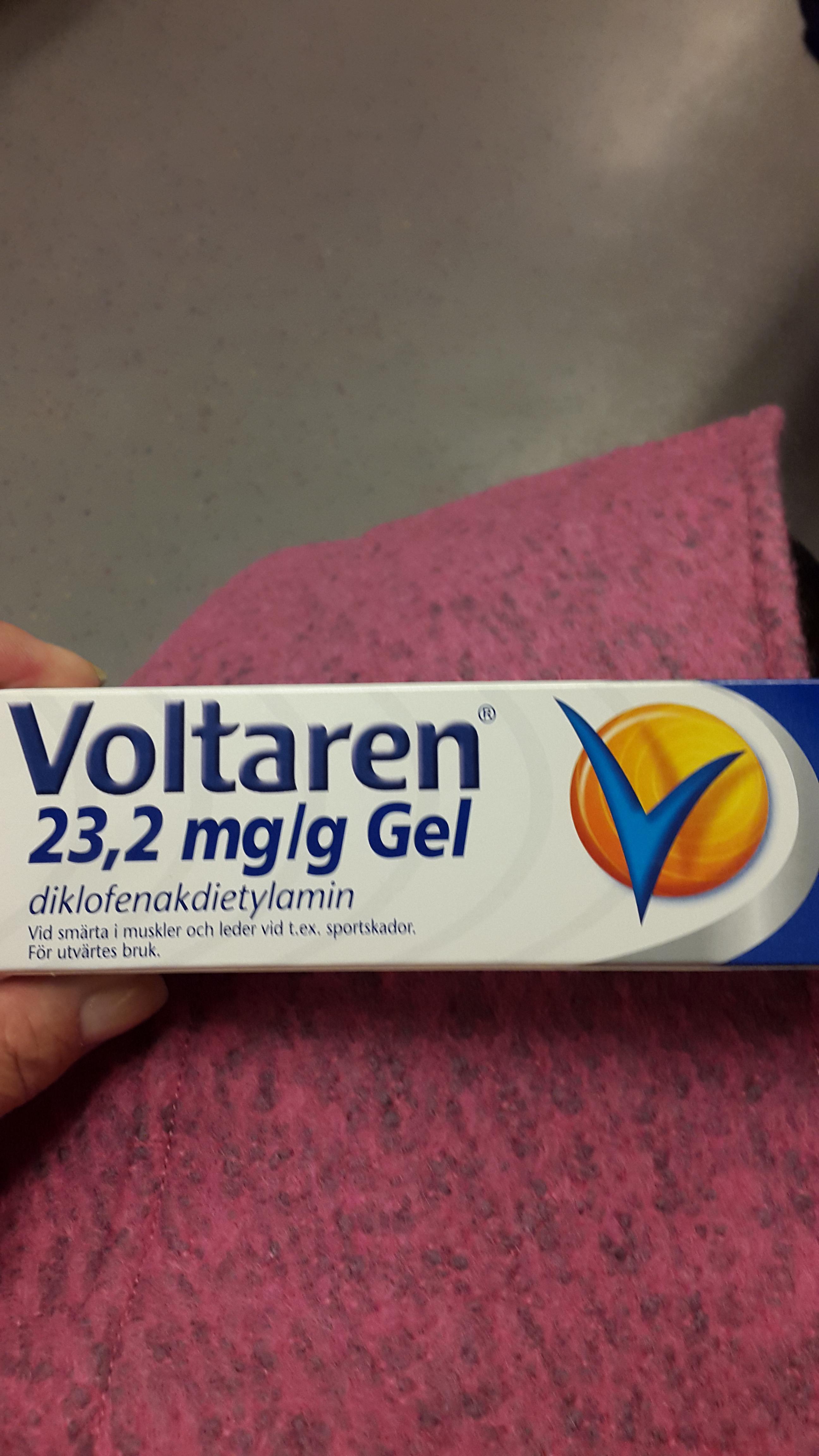 Självklart så hade jag ju ingen hemma igår,hur mycket jag än rotade i alla gömmor!! Bara Voltarentabletter, så det har jag knaprat idag. Och vad skönt det är att inte ha ont i foten och att kunna gå som vanligt! Hoppas att gelén är lika effektiv! Inbillar mig att det borde vara bättre med gel, som bara påverkar just foten. Tabletter påverkar ju liksom hela kroppen.