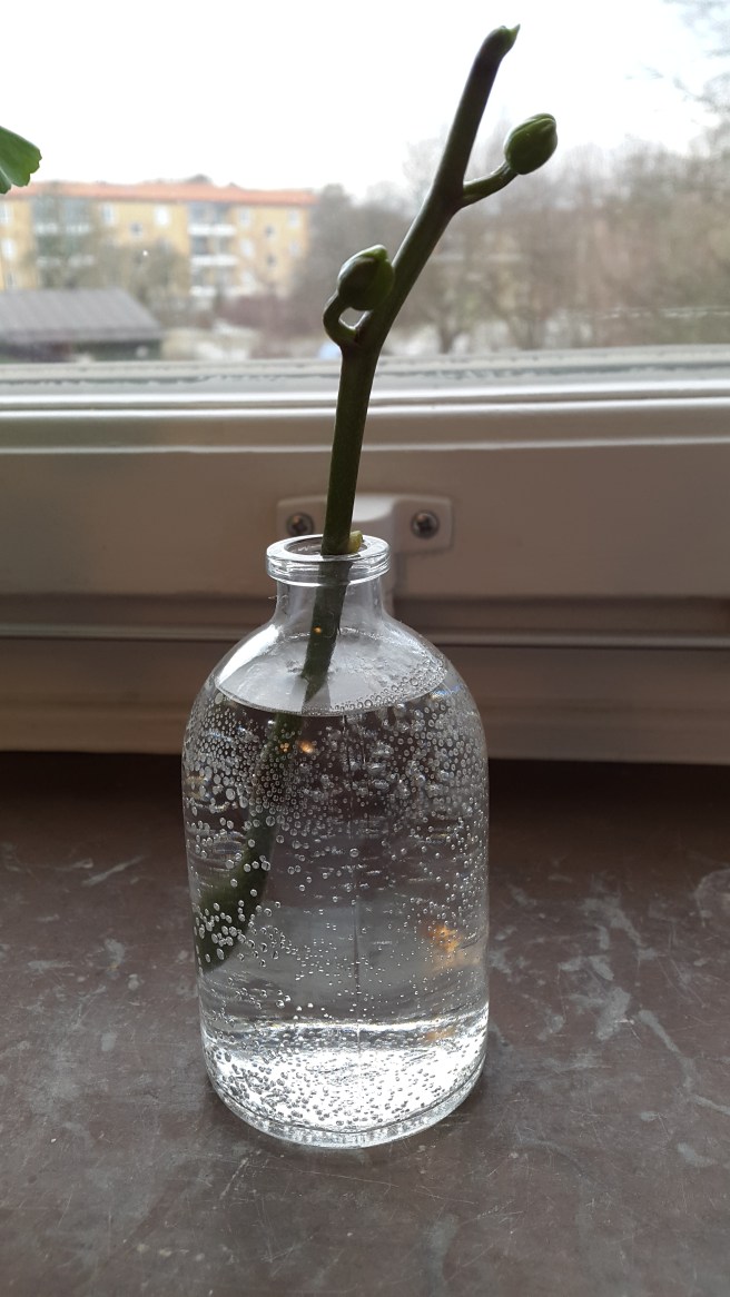 Jag hoppas det! Det vore så vackert! Även nu är den fin i den lilla glasflaskan. Ser så häftigt ut med alla bubblor i vattnet!