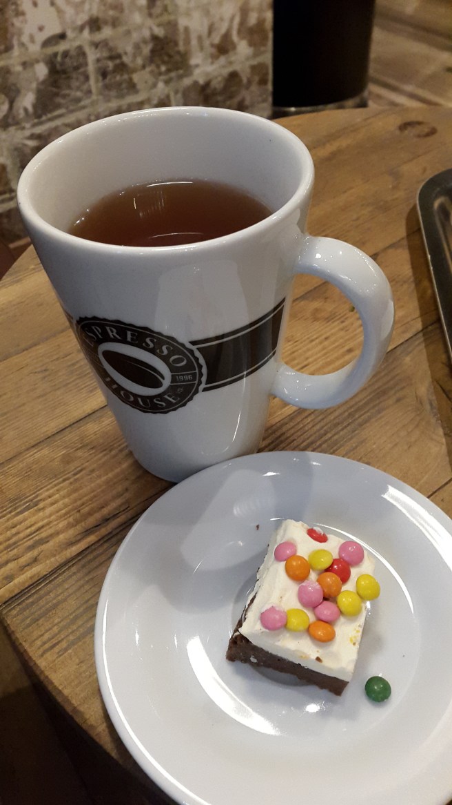 Tog en te och en mini browney och satt och tittade lite på folk.