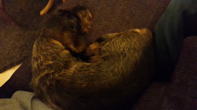 Vi kollade på en film, Laxfiske i Jemen. Och Buster gick mellan oss och blev gosad med.