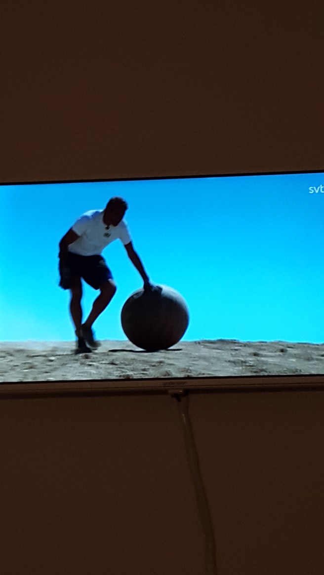 När de rullade de där tunga kloten upp och sen ner för en backe. Jösses vad det var kämpigt! Och jag kämpade ju med dem allihop! De gjorde ju bara 1 gång i taget.