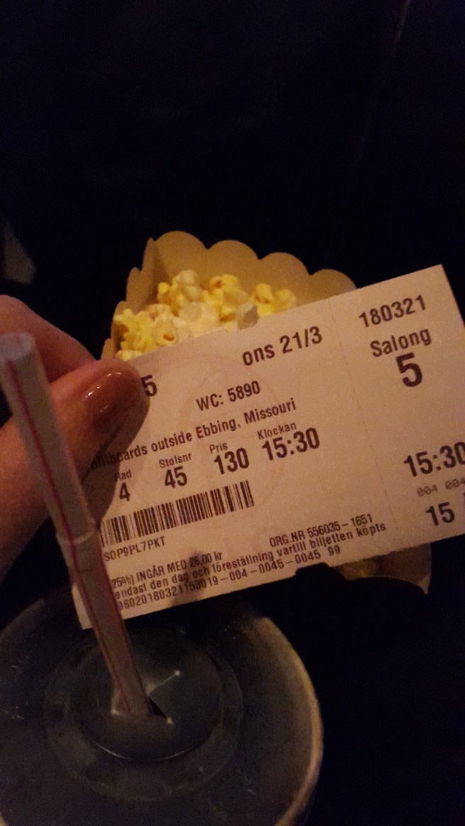 Sen kollade jag vad det gick för film på bion. Three billboards outside Ebbing, Missouri skulle precis börja.