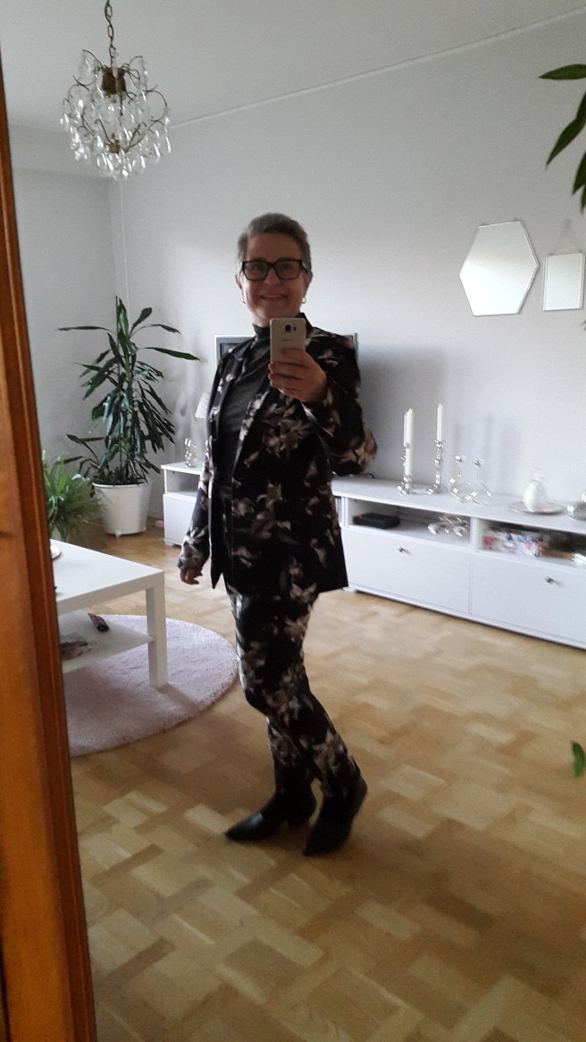 Det är ju modernt med pyjamasmode, men jag tycker inte att den här är pyjamas. Kavajen är en ”vanlig” kavaj och inte som en pyjamasjacka eller kimono. Men du är inte ensam om att tycka att jag köpt en pyjamas. 😊