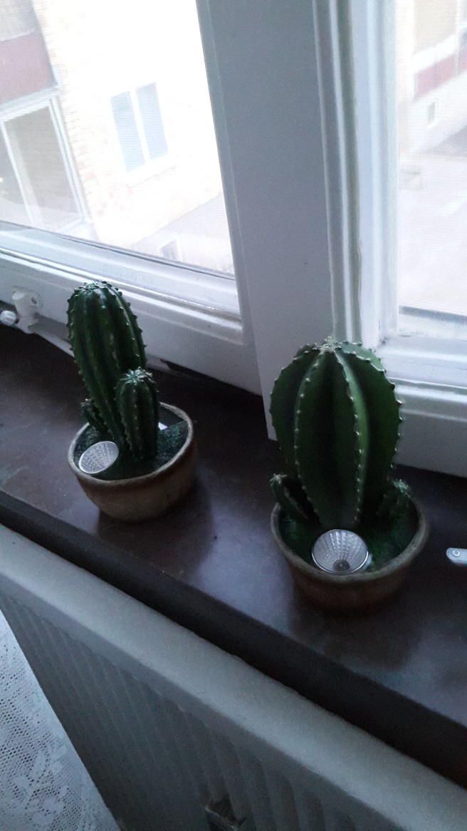 Sen plockade jag upp Carina och vi åkte till Rusta. Jag hittade några solcellslyktor till M och L till landet. Och så 2 kaktusar till mitt sovrumsfönster som jag oftast har öppet. Så blommor fryser där.