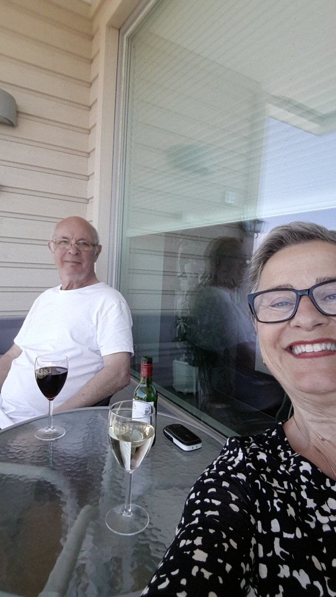 Och så satt vi en stund på hans balkong och bara pratade lite och sippade lite vin. Vi kunde ju dessutom fira att han inte behövde operera ögat!!