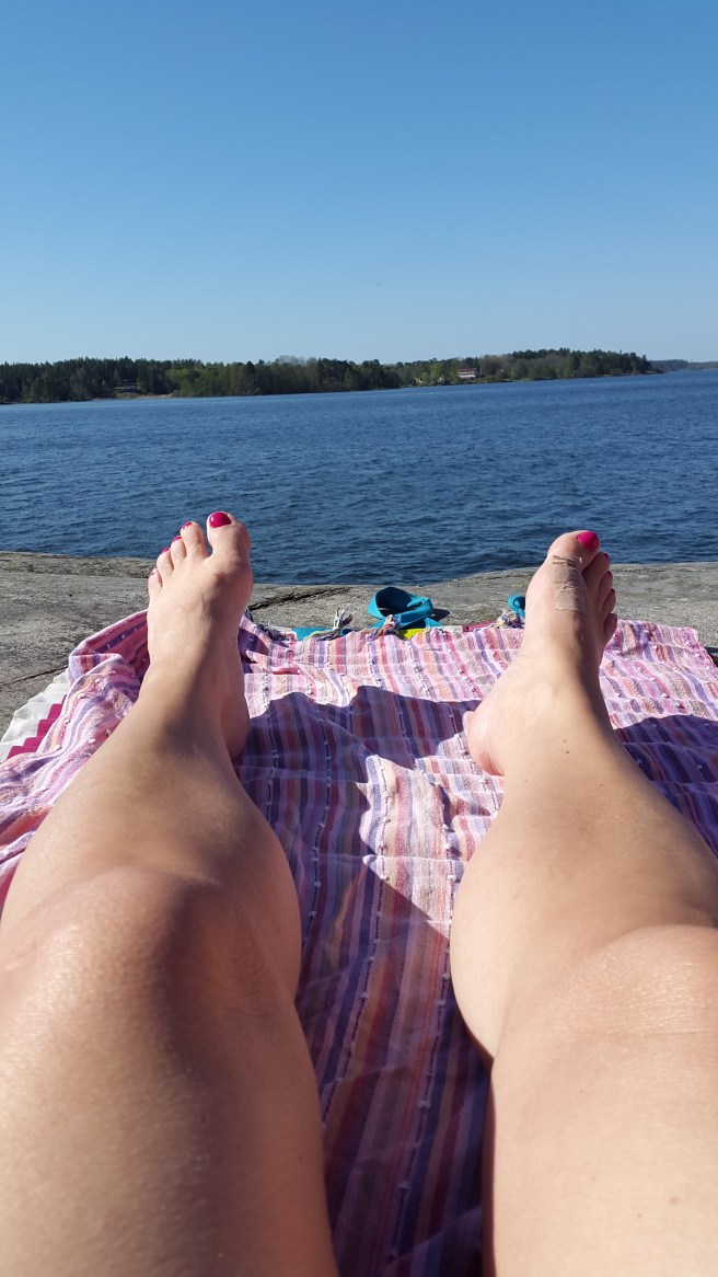 Så himla underbart!! Först blåste det liiite för svalt, men sen var det perfekt! Vi låg i drygt 7 timmar. Och eftersom det fläktade kändes inte solen… Trots solkräm är jag lite röd, men inte så farligt.