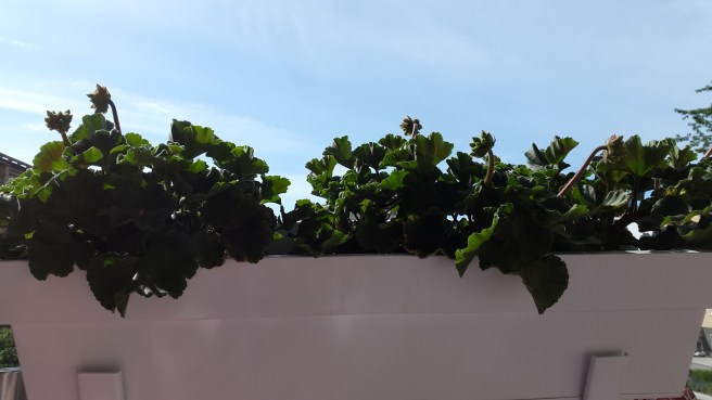 Så jag gick in och duschade och klädde mig. Sen vattnade jag alla blommor. Pelargonerna på balkongen har äntligen fått en massa knoppar!