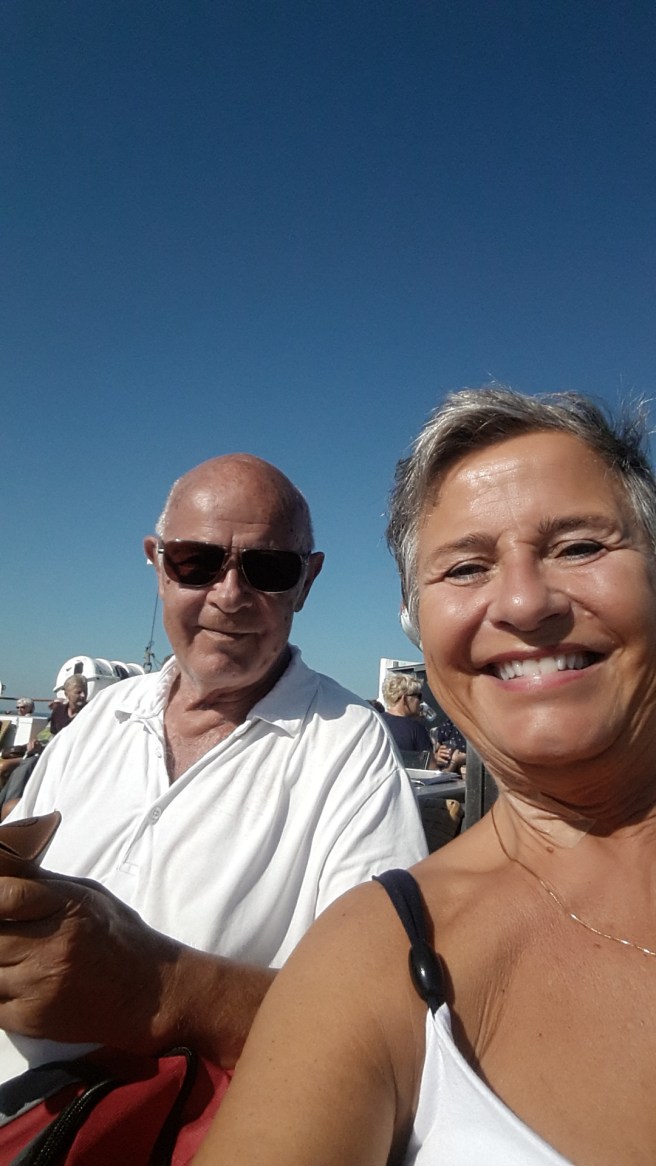 Vi satt ute på däck och njöt av sol och fläktande vindar. Lyssnade på bandet som spelade och tittade på folk.