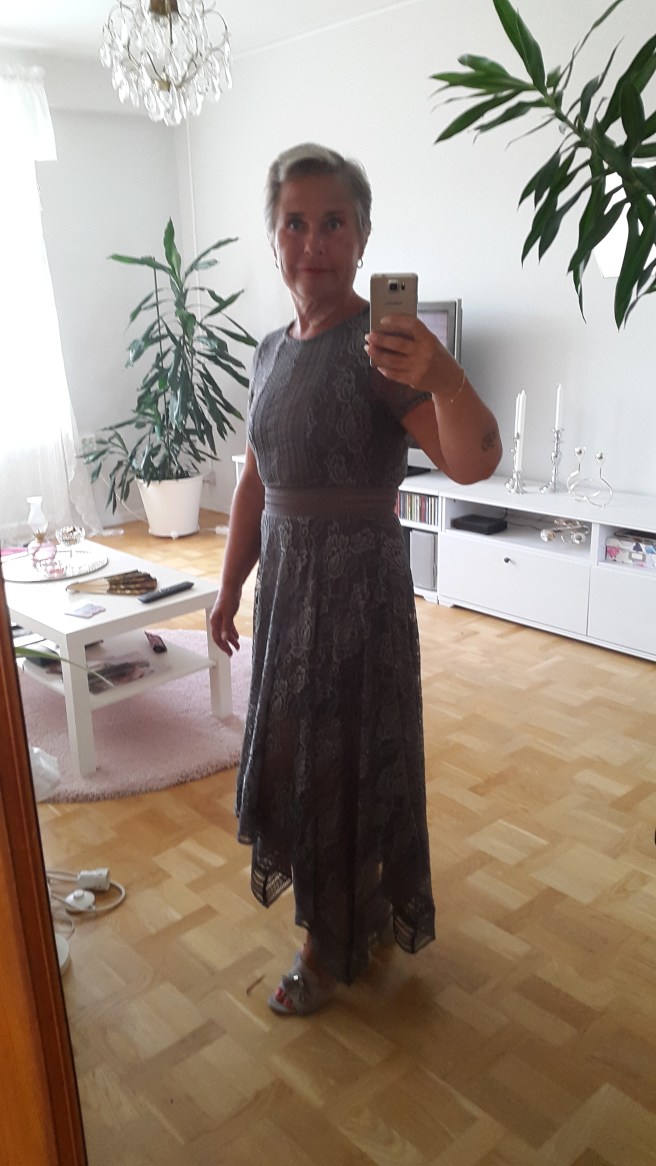 Och dragit på mig en lite finare klänning. Det ni!! Men det fick bli skor med låg klack, vi ska visst ha nån utomhusaktivitet en stund.