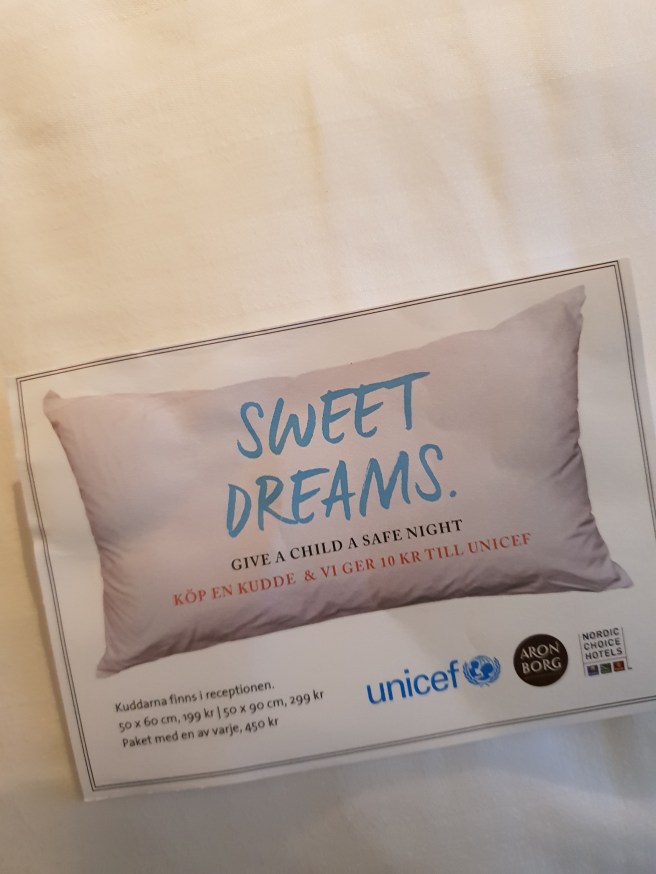 Jag brukar alltid säga att de så ofta har sköna kuddar på hotell. I Sverige o alla fall, kanske jag ska tillägga… Och jag har dessutom börjat tänka att jag skulle behöva ny kudde. Så det här var ju bra timing!