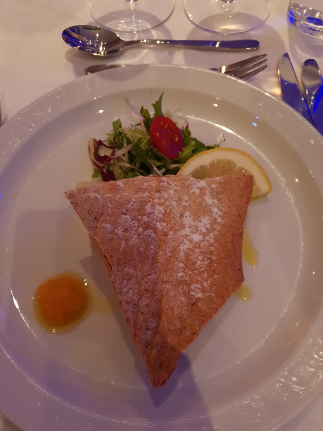 Jag missade att fota varmrätten, men oxfilé och potatisgratäng var det. Till förrätt var det laxtartar. Mm mm!