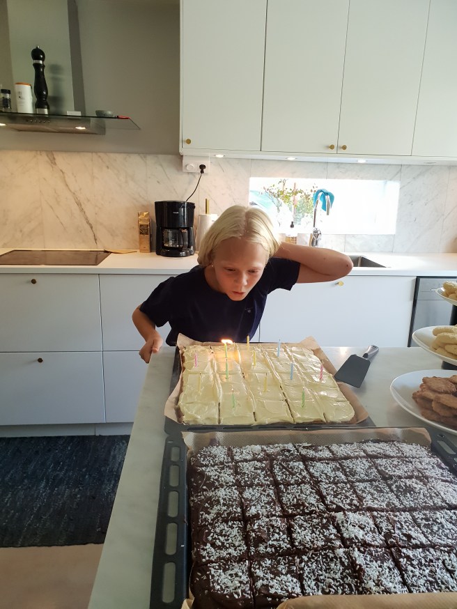 Jag ringde och sjöng för Carina och Lillpudding frågade vem mer som fyllde år. När jag berättade att min kompis fyllde 50 så han- Oj, 50!! Hur gammal är du? – Jag är 54. -Jaha!! Och ändå ser du så ung ut!! Lillpudding är en klok och skarpsynt ung man!!! 😉