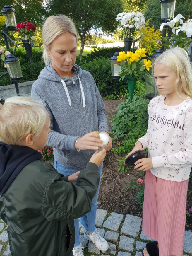 När alla gäster gått och vi plockat undan och fryst in alla kakor som blivit över så åkte vi till kyrkogården. Mormor skulle ju så klart vara med en sån här dag.