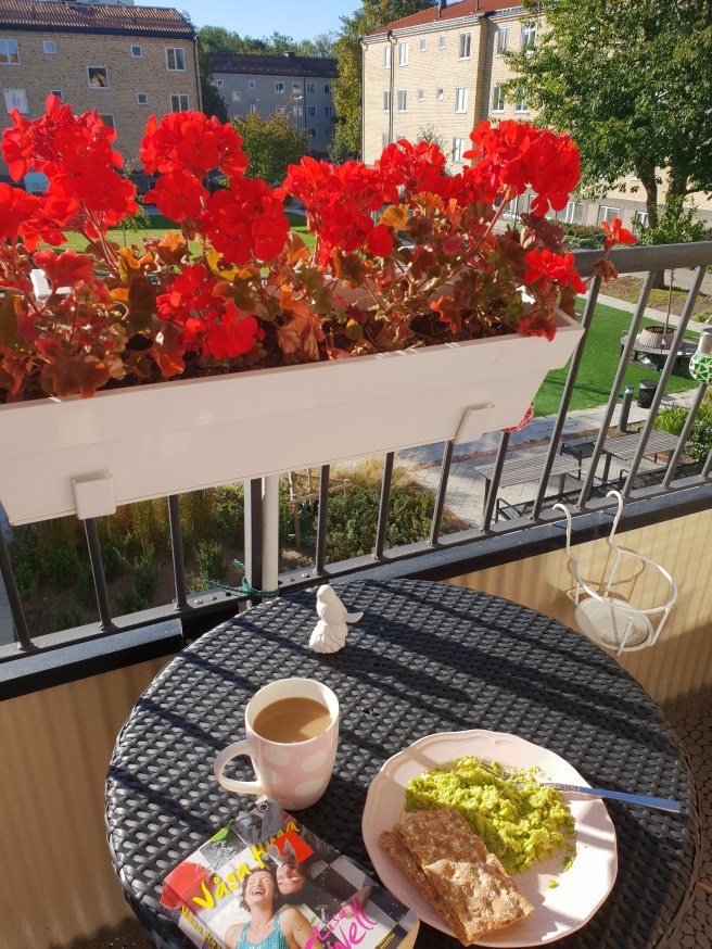 Nu sitter jag på min balkong och har ätit frukost i solen.