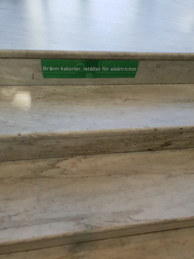 Jag går ju alltid i trappor i stället för att åka hiss eller rulltrappor. Idag fick jag syn på nya små meddelanden i trapporna när jag skulle äta lunch.