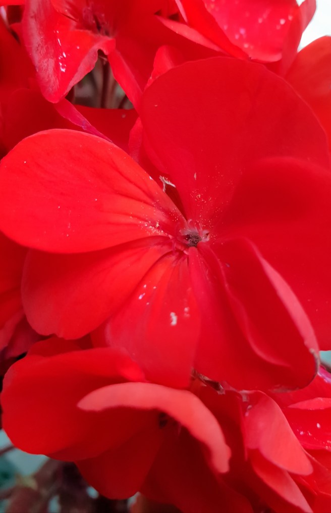 När jag tittade på bilderna jag lagt upp i förra inlägget så insåg jag att de inte gjorde pelargonerna rättvisa. Färgen kom inte alls till sin rätt. Så här kommer en närbild.