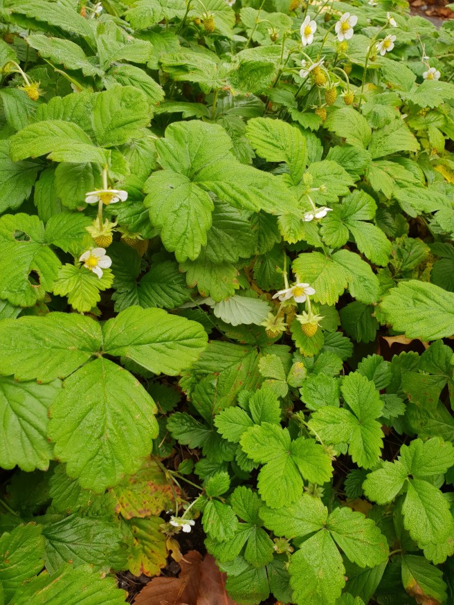 I morse när jag gick till tunnelbanan så fick jag syn på att smultronplantorna blommar.