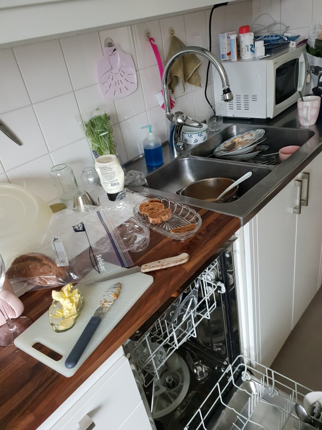 Det första jag gjorde när jag kom upp i morse var att fylla diskmaskinen.