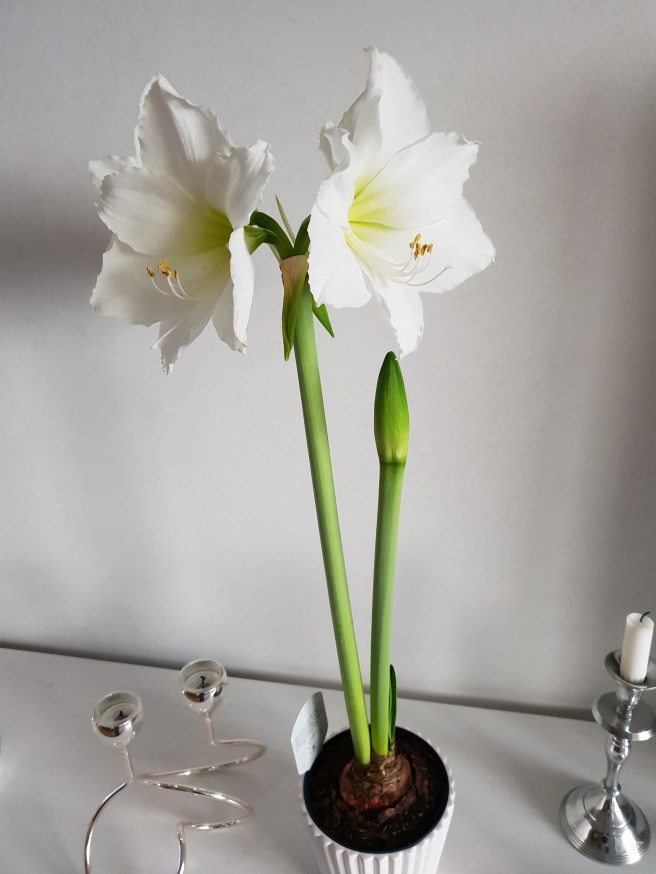 Jag fick en amaryllis av Agneta på tjejmiddagen och den blommar nu!
