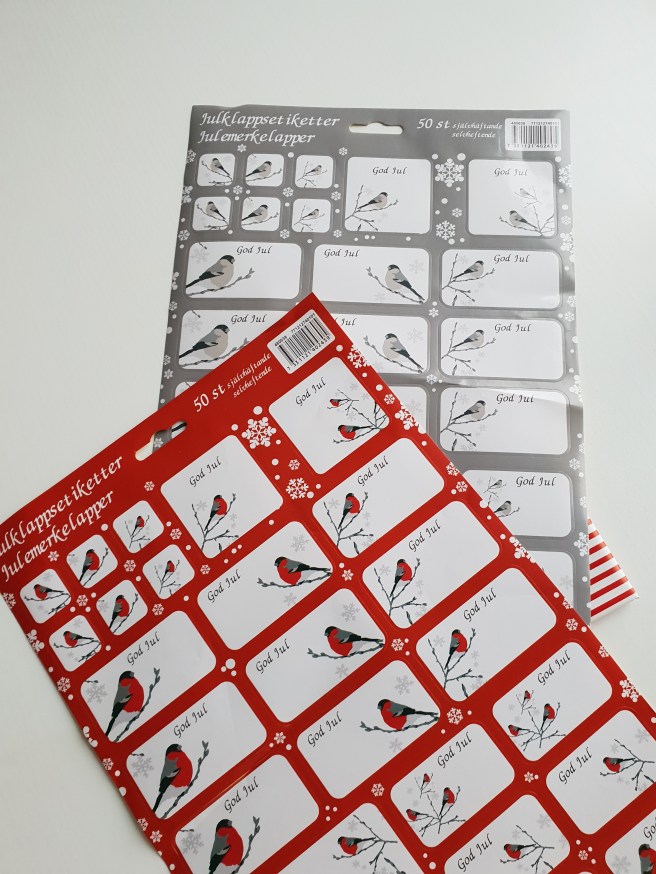 Men alltså, jag hade köpt juletiketter. Och ett av arken var grå!! Grå?!? Hur juligt och glatt känns det?? Tog färgen slut i bläckpatronen, eller? Så himla trist!