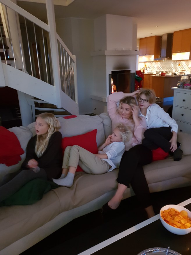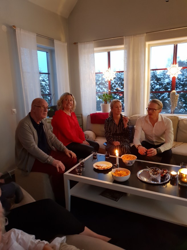 Svägerskan och jag packade sen min bil full med alla kartonger och säckar med omslagspapper som jag körde till grovsoporna när jag kom hem. Hemma så bara duschade jag och bytte om och så åkte jag till Nettis, Toyboy och barnen. Där var även Nettis mamma Marja och Toyboys mamma, pappa och syster. Så mysigt! Vi åt tillsammans, de åt lutfisk och jag åt sill och köttbullar. Mums!