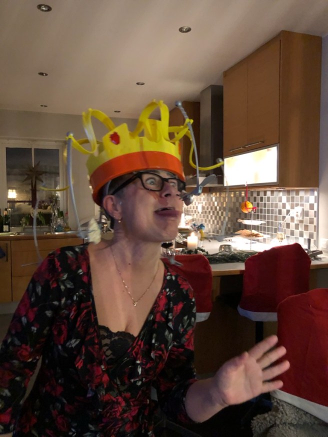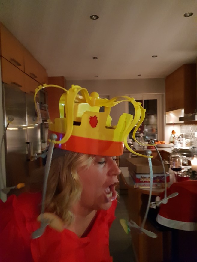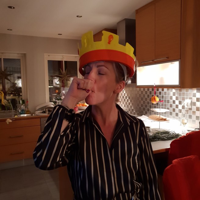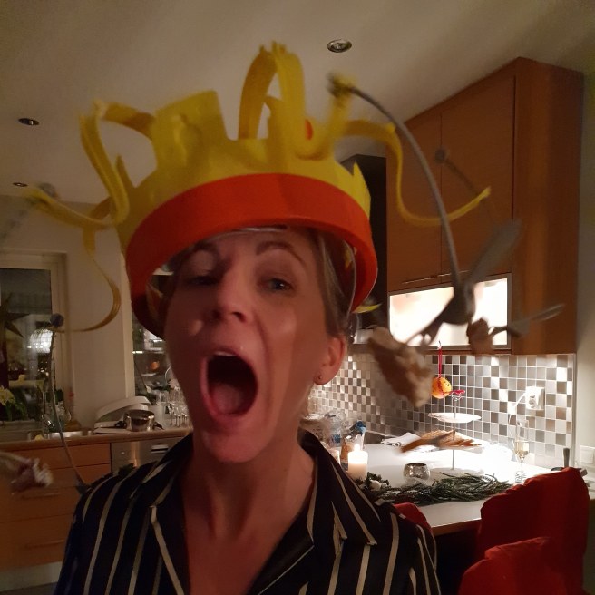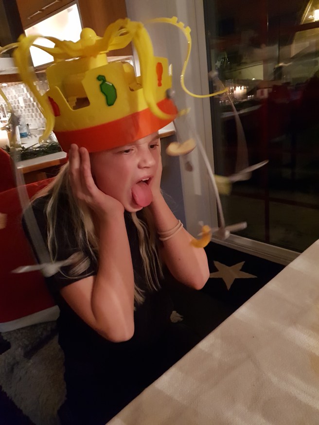 Syrran såg ut som Prins John när vi satte på henne kronan!!!