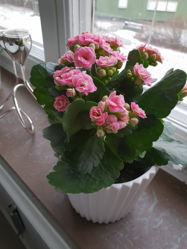 Vilken fin blomma! Jag gillar inte rosa speciellt mycket med ett stort undantag; blommor! Och en Kalanchoe i den färgen var jättefin. En sådan vill jag också ha i köket!