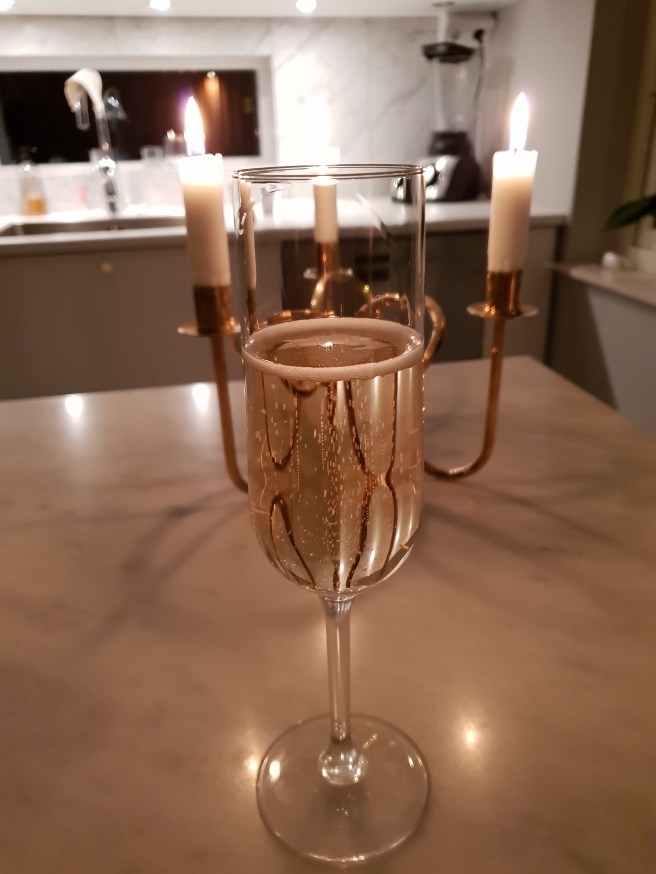 Efter det så åkte vi hem till henne och fikade och hon gjorde fröknäcke enligt mina instruktioner. Vi babblade och hade trevligt! Sen åkte jag hem och packade övernattningsväska och åkte över till Systeryster, Svågern och Puddingarna. Vi började med lite Champagne.