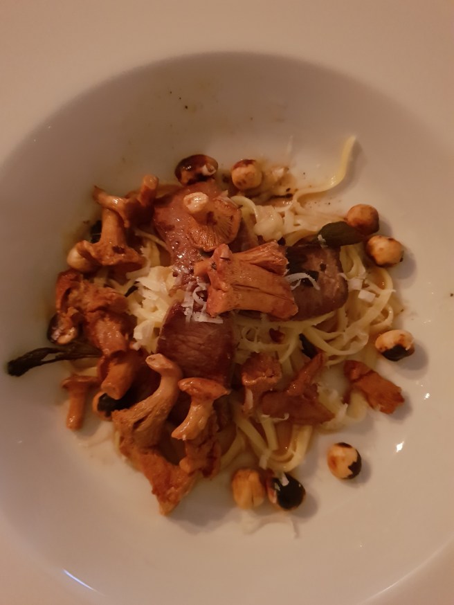 Han stekte lammfilé, kantareller och rostade hasselnötter och kokade pasta.