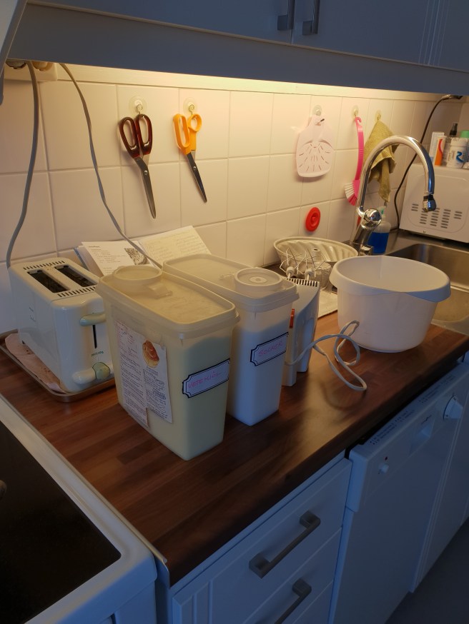 Nu kan jag ställa tillbaka allting. Jag ska oxå baka en paj, men den tänkte jag ta ur ugnen strax innan gästerna kommer så den är varm. Och då kommer det dofta gott av nybakt oxå när de kommer! He he ! Där tänkte jag till!