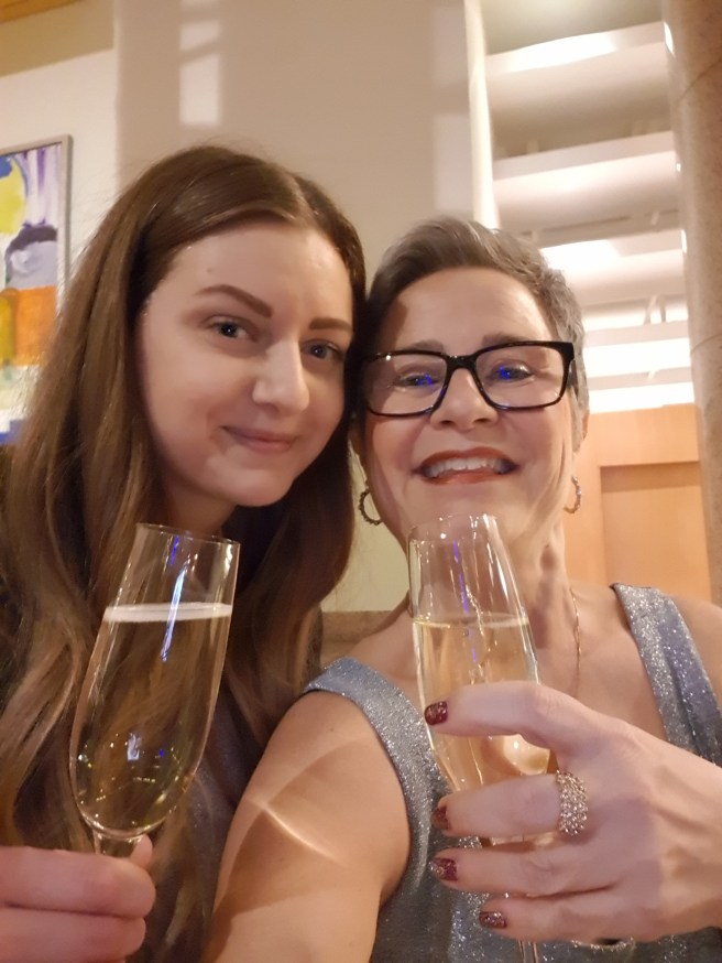 Temat var mycket av allt, gå all in! Vår avdelning satsade på glitter! Till och med mitt nagellack glittrar! Linnea och jag skålar i bubbel!